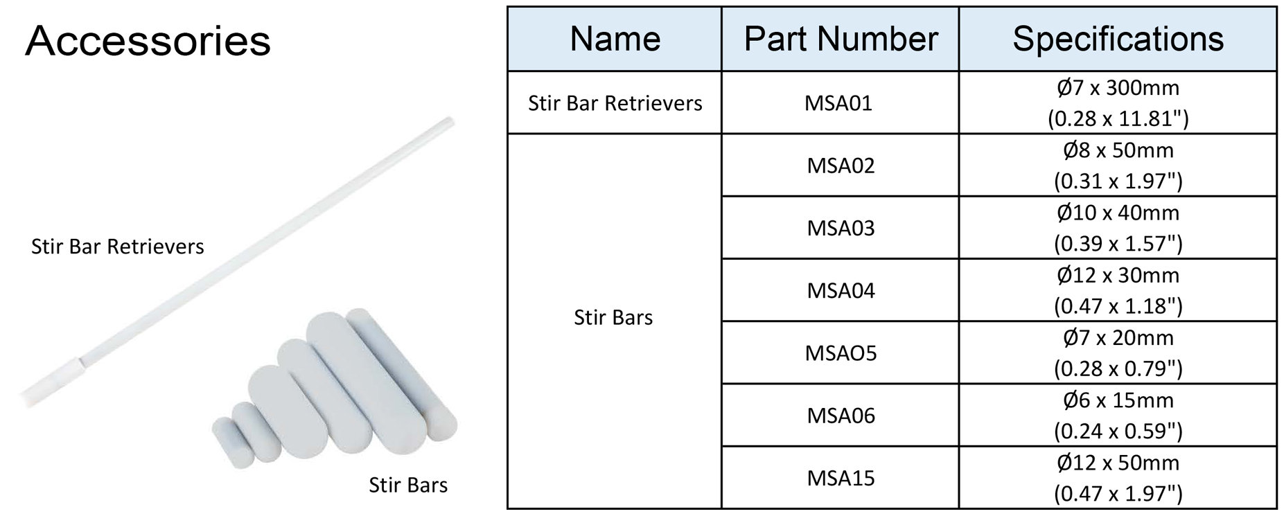 | Accessory Included in Standard Package | MSA04 Stirrer Bar Ø12×30 mm (Ø0.47 x 1.18 in) |